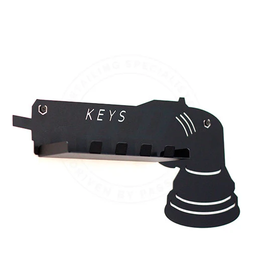 Hanger for car keys in shape of polishing machine with additional shelf. A convenient and aesthetically pleasing place for car keys. You may also consider itv an attractive clothes hanger.
